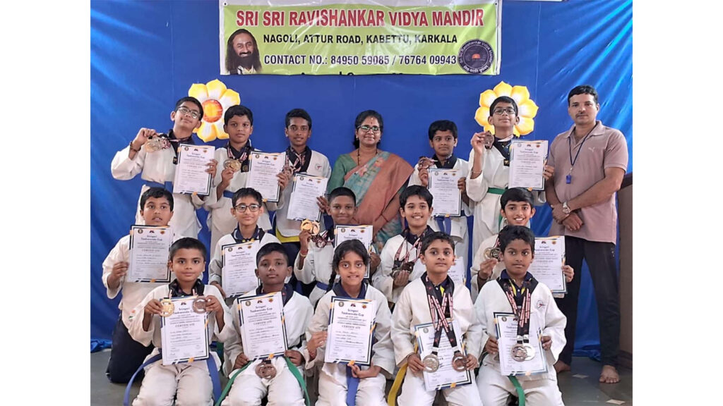 ಕಾರ್ಕಳ : ಜೆ .ಸಿ.ಎಂ.ಬಿ ಕಾಲೇಜು ಇಂಡೋರ್ ಸ್ಟೇಡಿಯಂ, ಶೃಂಗೇರಿ, ಇಲ್ಲಿ ನಡೆದ G_4 ರಾಜ್ಯಮಟ್ಟದ ಟೆಕ್ವಾ೦ಡೋ ಚಾಂಪಿಯನ್ ಶಿಪ್- 2025 ಟೂರ್ನಮೆಂಟ್ ನಲ್ಲಿ ಶ್ರೀ ಶ್ರೀ ರವಿಶಂಕರ ವಿದ್ಯಾಮಂದಿರದ 3ನೇ ತರಗತಿ ವಿದ್ಯಾರ್ಥಿಗಳಾದ ರೆಯಾಂಶ್.ಪಿ.ಶೆಟ್ಟಿಗಾರ್ ಇವರು ಕ್ಯೂರ್ಗಿ- ಕಂಚಿನ ಪದಕ ಪೂoಸೆ ಕಂಚಿನ ಪದಕ, ಧನ್ವಿತ್ ಎಸ್.ಕೋಟ್ಯಾನ್ ಕ್ಯೂರ್ಗಿ ಬೆಳ್ಳಿಯ ಪದಕ ಪೂಮ್ಸೆ ಕಂಚಿನ ಪದಕ,ಆರ್ಯನ್ ಪೂಜಾರಿ ಪೂಮ್ಸೆ ಕಂಚಿನ ಪದಕ, ಅದ್ವಿತ್ ನಾಯಕ್ ಕ್ಯೂರ್ಗಿ ಬೆಳ್ಳಿ ಪದಕ ಕ್ಯೂರ್ಗಿ ಕಂಚಿನ ಪದಕವನ್ನು, 5 ನೇತರಗತಿ ವಿದ್ಯಾರ್ಥಿಗಳಾದ ಅದಿಕ್ಷಿತ್ ಶೆಟ್ಟಿ ಕ್ಯೂಗಿ೯ ಚಿನ್ನದ ಪದಕ ಪೂoಸೆ ಕಂಚಿನ ಪದಕ, ಮೊಹಮ್ಮದ್ಅನಸ್ ಕ್ಯೂರ್ಗಿ ಕಂಚಿನ ಪದಕ ಪೂoಸೆ ಕಂಚಿನ ಪದಕ, ಅರೋಹಿ ಶೆಟ್ಟಿ ಕ್ಯೂರ್ಗಿ ಕಂಚಿನ ಪದಕ ಪೂoಸೆ ಕಂಚಿನ ಪದಕ, ಈತನ್ ಅದ್ರಿತ್ ಕ್ಯೂಗಿ೯ ಕಂಚಿನ ಪದಕ ಪೂoಸೆ ಚಿನ್ನದ ಪದಕವನ್ನು, 6ನೇ ತರಗತಿ ವಿದ್ಯಾರ್ಥಿಗಳಾದ ಸಾತ್ವಿಕ್ ಎಸ್.ನಾಯಕ್ ಕ್ಯೂಗಿ೯ ಚಿನ್ನದ ಪದಕ ಪೂoಸೆ ಬೆಳ್ಳಿಯ ಪದಕ,ಸಮರ್ಥ್ ಎಸ್.ನಾಯಕ್ ಕ್ಯೂರ್ಗಿ ಕಂಚಿನ ಪದಕ ಪೂoಸೆ ಕಂಚಿನ ಪದಕ, 7ನೇ ತರಗತಿ ವಿದ್ಯಾರ್ಥಿಗಳಾದ ಬೋಳ ಶ್ರೇಯಾಂಶ್ ಹೆಗ್ಡೆ ಕ್ಯೂಗಿ೯ ಬೆಳ್ಳಿ ಪದಕ ಪೂoಸೆ ಬೆಳ್ಳಿಯ ಪದಕ, ಈಶಾನ್ ಹೆಗ್ಡೆ ತರಗತಿ ಕ್ಯೂರ್ಗಿ ಚಿನ್ನದ ಪದಕ ಪೂoಸೆ ಬೆಳ್ಳಿಯ ಪದಕ, ಬೋಳ ಸಿದ್ದಾoತ್ ಹೆಗ್ಡೆ ಕ್ಯೂಗಿ೯ ಕಂಚಿನ ಪದಕ ಪೂoಸೆ ಕಂಚಿನ ಪದಕ, ಆದಿತ್ ಶೆಟ್ಟಿ ಕ್ಯೂರ್ಗಿ ಚಿನ್ನದ ಪದಕ ಪೂoಸೆ ಬೆಳ್ಳಿಯ ಪದಕ, 8ನೇ ತರಗತಿ ವಿದ್ಯಾರ್ಥಿ ಮೇಹುಲ್ ಡಿ.ಸುವರ್ಣ ಕ್ಯೂರ್ಗಿ ಬೆಳ್ಳಿಯ ಪದಕ ಪೂoಸೆ ಕಂಚಿನ ಪದಕಗಳನ್ನು ಪಡೆದಿರುತ್ತಾರೆ.