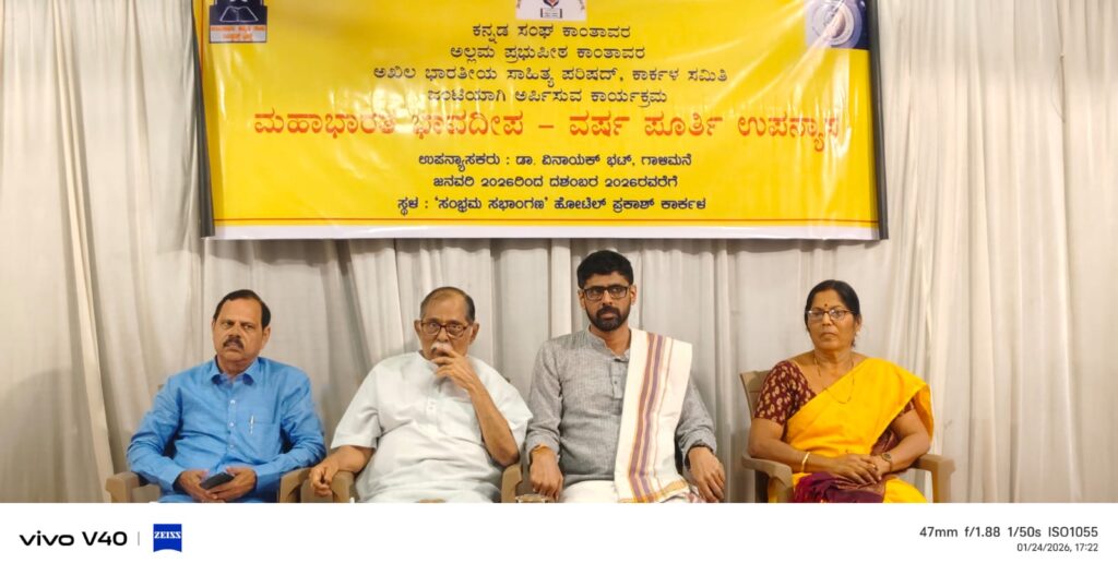 “ಆರ್ಷಕಾವ್ಯ – ಉಪಕ್ರಮಪರ್ವ” ಕುರಿತು  ಡಾ. ವಿನಾಯಕ ಭಟ್ ಗಾಳಿಮನೆ ಇವರ ಉಪನ್ಯಾಸ ಕಾರ್ಕಳದಲ್ಲಿ ನಡೆಯಿತು.