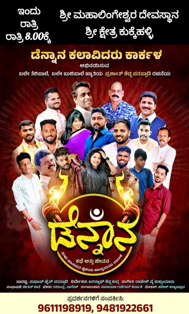 ಇಂದು ಡೆನ್ನಾನ ತುಳು ಹಾಸ್ಯಮಯ ನಾಟಕ ಕುಕ್ಕೆಹಳ್ಳಿಯಲ್ಲಿ