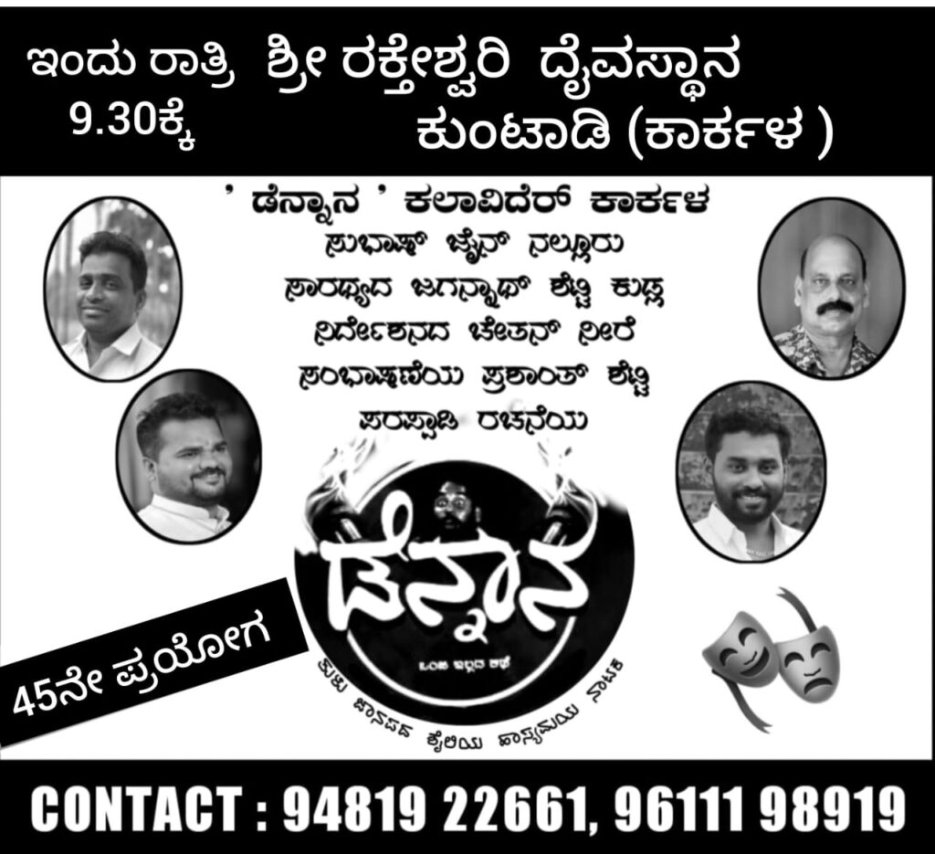 HomeBlogಇಂದು ರಾತ್ರಿ, ಶ್ರೀ ರಕ್ತೇಶ್ವರಿ ದೇವಸ್ಥಾನ ಕುಂಟಾಡಿ ಕಾರ್ಕಳ Blog ಇಂದು ರಾತ್ರಿ, ಶ್ರೀ ರಕ್ತೇಶ್ವರಿ ದೇವಸ್ಥಾನ ಕುಂಟಾಡಿ ಕಾರ್ಕಳ By nammakarla.in April 17, 2025 0 Share FacebookTwitterWhatsAppCopy URL “ಡೆನ್ನಾನ” ತುಳು ಜಾನಪದ ಶೈಲಿಯ ಹಾಸ್ಯಮಯ ನಾಟಕ ಶ್ರೀ ರಕ್ತೇಶ್ವರಿ ದೇವಸ್ಥಾನ ಕುಂಟಾಡಿ ಕಾರ್ಕಳ ಇಲ್ಲಿ ಇಂದು ರಾತ್ರಿ 9:30ಕ್ಕೆ “ಡೆನ್ನಾನ” ತುಳು ಜಾನಪದ ಶೈಲಿಯ ಹಾಸ್ಯಮಯ ನಾಟಕ ಪ್ರದರ್ಶನಗೊಳ್ಳಲಿದೆ. Share FacebookTwitterWhatsAppCopy URL Previous articleಶ್ರೀ ಮಹಾವಿಷ್ಣು ಹಾಗೂ ಶ್ರೀ ಗೋಪಾಲಕೃಷ್ಣ ದೇವಸ್ಥಾನ ಹಳೆಪಳ್ಳಿ ,ಮಾಳNext articleಏನೇ ಮನಸ್ತಾಪ ಇದ್ರೂ ಒಗ್ಗಟ್ಟಾಗಿರಬೇಕು; ಸಿಎಂ, ಡಿಸಿಎಂಗೆ ಕಿವಿಮಾತು ನೀಡಿದ ಎಐಸಿಸಿ ಅಧ್ಯಕ್ಷ ಮಲ್ಲಿಕಾರ್ಜುನ ಖರ್ಗೆ nammakarla.inhttp://nammakarla.in RELATED ARTICLES Blog ನೃತ್ಯವೃಕ್ಷ ಸ್ಕೂಲ್ ಆಫ್ ಡ್ಯಾನ್ಸ್ ತಂಡದವರಿಂದ February 21, 2026 Blog ಕಾರ್ಕಳ: ಕೆಮ್ಮಿನಿಂದ ಬಳಲುತ್ತಿದ್ದ ಯುವಕ, ಕುಸಿದು ಬಿದ್ದು ಸಾವು February 21, 2026 Blog ಕುತ್ಯಾರು ಶ್ರೀ ಸೋಮನಾಥೇಶ್ವರ ದೇವಸ್ಥಾನ ಬೆಳ್ತಂಗಡಿ ವರ್ಷಾವಧಿ ಜಾತ್ರಾ ಮಹೋತ್ಸವ-2026, February 21, 2026 LEAVE A REPLY Cancel reply Comment: Please enter your comment! Name:* Please enter your name here Email:* You have entered an incorrect email address! Please enter your email address here Website: Save my name, email, and website in this browser for the next time I comment. - Advertisment - Most Popular ನೃತ್ಯವೃಕ್ಷ ಸ್ಕೂಲ್ ಆಫ್ ಡ್ಯಾನ್ಸ್ ತಂಡದವರಿಂದ February 21, 2026 ಕಾರ್ಕಳ: ಕೆಮ್ಮಿನಿಂದ ಬಳಲುತ್ತಿದ್ದ ಯುವಕ, ಕುಸಿದು ಬಿದ್ದು ಸಾವು February 21, 2026 ಕುತ್ಯಾರು ಶ್ರೀ ಸೋಮನಾಥೇಶ್ವರ ದೇವಸ್ಥಾನ ಬೆಳ್ತಂಗಡಿ ವರ್ಷಾವಧಿ ಜಾತ್ರಾ ಮಹೋತ್ಸವ-2026, February 21, 2026 ಹವಾಮಾನ ವರದಿ February 21, 2026 Load more Recent Comments