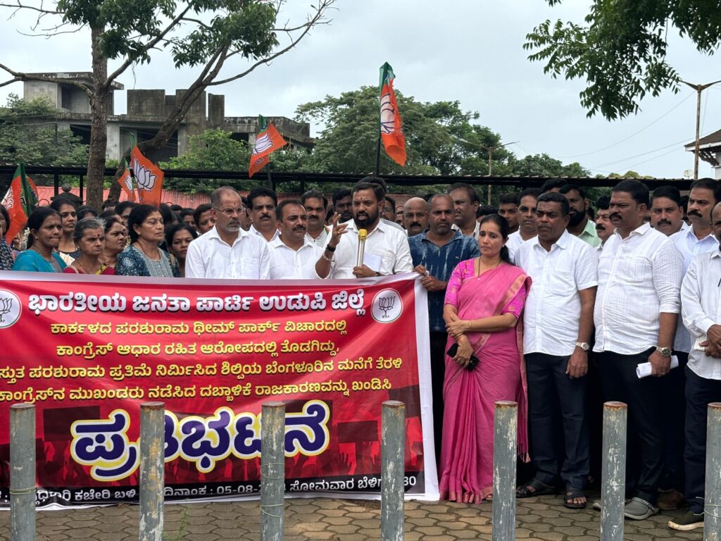 ಕಾರ್ಕಳದ ಪರಶುರಾಮ್ ಥೀಮ್ ಪಾರ್ಕ್ ವಿಚಾರದಲ್ಲಿ ಕಾಂಗ್ರೆಸ್ ಆಧಾರ ರಹಿತ ಆರೋಪದಲ್ಲಿ ತೊಡಗಿದ್ದು, ಪ್ರಸ್ತುತ ಪರಶುರಾಮ ಥೀಮ್ ಪಾರ್ಕ್ ನಲ್ಲಿ ಪ್ರತಿಮೆ ನಿರ್ಮಿಸಿದ ಶಿಲ್ಪಿಯ ಬೆಂಗಳೂರು ಮನೆಗೆ ತೆರಳಿ ಕಾಂಗ್ರೆಸ್ ನ ಮುಖಂಡರು ದಬ್ಬಾಳಿಕೆ ನಡೆಸಿದ್ದಾರೆ ಎಂದು ಆರೋಪಿಸಿ ಉಡುಪಿ ಜಿಲ್ಲಾ ಭಾರತೀಯ ಜನತಾ ಪಾರ್ಟಿ ಇಂದು ಮಣಿಪಾಲ ಜಿಲ್ಲಾಧಿಕಾರಿಗಳ ಕಚೇರಿಯಲ್ಲಿ ಪ್ರತಿಭಟನೆ ನಡೆಸಿತು.