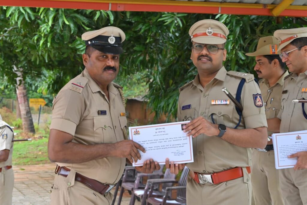 ಅ :10 ಶುಕ್ರವಾರದ ಕವಾಯತಿನಲ್ಲಿ ಉಡುಪಿ ಜಿಲ್ಲೆಯಲ್ಲಿ ಗಣ್ಯ ವ್ಯಕ್ತಿಗಳ ಬೆಂಗಾಗಲು ಕರ್ತವ್ಯದ ಸಮಯದಲ್ಲಿ ಉತ್ತಮ ಕರ್ತವ್ಯ ನಿರ್ವಹಿಸಿ, ಎಲ್ಲಾ ಇಲಾಖೆಯೊಂದಿಗೆ ಸಮನ್ವಯ ಸಾಧಿಸಿ ಮೇಲಾಧಿಕಾರಿಗಳ ಪ್ರಶಂಸೆಗೆ ಪಾತ್ರರಾದ ಅಧಿಕಾರಿ ಸಿಬ್ಬಂದಿಗಳಿಗೆ ಮಾನ್ಯ ಪೋಲೀಸ್ ಅಧೀಕ್ಷಕರಾದ ಹರಿರಾಮ್ ಶಂಕರ್ ಅವರು ಪ್ರಶಂಸನಾ ಪತ್ರವನ್ನು ನೀಡಿ ಗೌರವಿಸಿದರು.