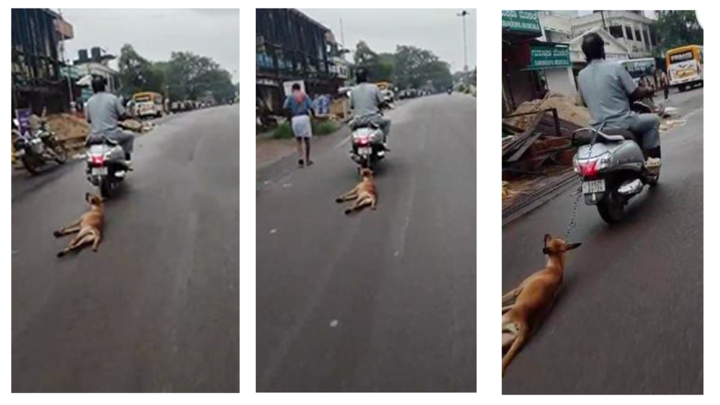 ನಾಯಿಯ ಕೊರಳಿಗೆ ಸರಪಳಿ ಹಾಕಿ ಸರಪಳಿಯನ್ನು ದ್ವಿಚಕ್ರ ವಾಹನಕ್ಕೆ ಕಟ್ಟಿ ಶಿರ್ವ ಪೇಟೆಯಲ್ಲಿ ಸುಮಾರು ದೂರ ಎಳೆದೊಯ್ದ ಅಮಾನವೀಯ ವಿಡಿಯೋವೊಂದು ಸುದ್ದಿಯಾಗಿದೆ