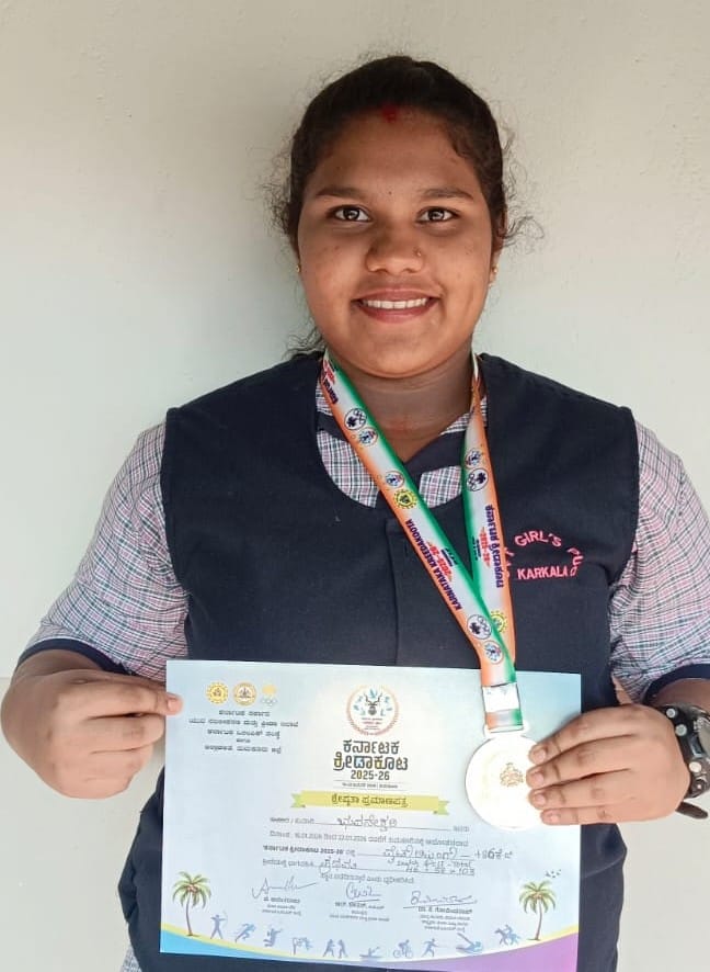 ಕರ್ನಾಟಕ ಸರಕಾರ ಯುವ ಸಬಲೀಕರಣ ಮತ್ತು ಕ್ರೀಡಾ ಇಲಾಖೆ , ಕರ್ನಾಟಕ ಒಲಿಂಪಿಕ್ ಸಂಸ್ಥೆ ಹಾಗೂ ಜಿಲ್ಲಾಡಳಿತ ತುಮಕೂರು ಜಿಲ್ಲೆ ಇವರ ಸಂಯುಕ್ತ ಆಶಯದಲ್ಲಿ ತುಮಕೂರಿನಲ್ಲಿ ನಡೆದ ಕರ್ನಾಟಕ ಕ್ರೀಡಾಕೂಟ 2025-26 ರಲ್ಲಿ 86 ಕೆಜಿ ವಿಭಾಗದ ರಾಜ್ಯಮಟ್ಟದ ವೈಟ್ ಲಿಫ್ಟಿಂಗ್ ನಲ್ಲಿ ಎಸ್ ವಿ ಟಿ ವನಿತಾ ಪದವಿ ಪೂರ್ವ ಕಾಲೇಜಿನ ಪ್ರಥಮ ವಾಣಿಜ್ಯ ವಿಭಾಗದ ಕುಮಾರಿ ಭುವನೇಶ್ವರಿ ಪ್ರಥಮ ಸ್ಥಾನ ಪಡೆದಿರುತ್ತಾರೆ.