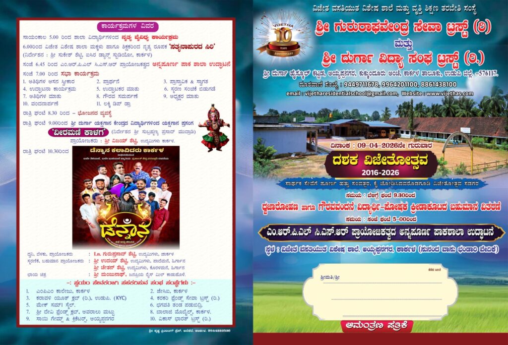 ಏಪ್ರಿಲ್ 9 ರಂದು ವಿಜೇತ ವಿಶೇಷ ಶಾಲಾ ದಶಕ ವಿಜೇತೋತ್ಸವ ಕಾರ್ಯಕ್ರಮ.