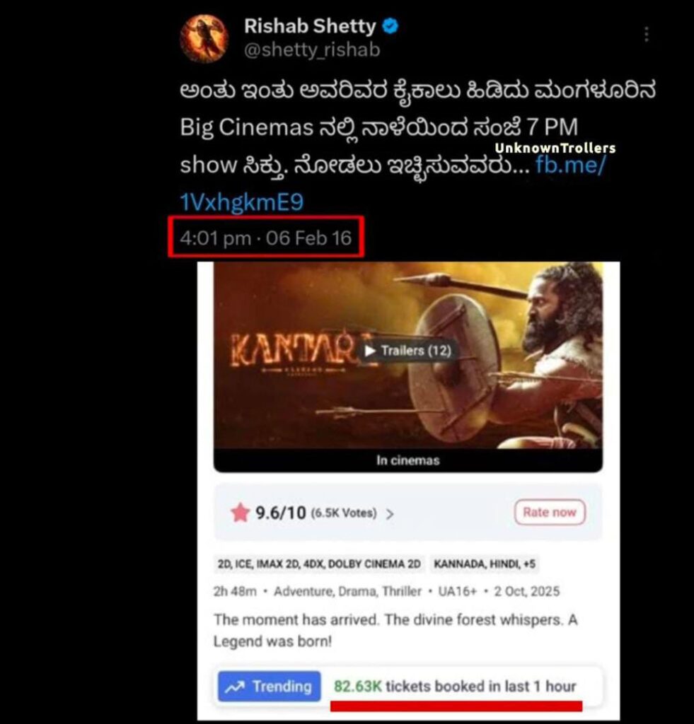 ‘2016 ರಲ್ಲಿ ಒಂದು ಪ್ರದರ್ಶನಕ್ಕಾಗಿ ಒದ್ದಾಡಿದ ದಿನದಿಂದ, 5000ಕ್ಕೂ ಹೆಚ್ಚು housefull ಶೋಗಳ ಈ ಅದ್ಭುತ ಪಯಣ. ಇದು ಸಾಧ್ಯವಾಗಿದ್ದು ನಿಮ್ಮ ಪ್ರೀತಿ ಮತ್ತು ಬೆಂಬಲದಿಂದ ಮಾತ್ರ. ಇದಕ್ಕಾಗಿ ನಾನು ನಿಮಗೆ ಸದಾ ಋಣಿ. ಇದನ್ನು ಸಾಧ್ಯವಾಗಿಸಿದ ಪ್ರತಿಯೊಬ್ಬ ವ್ಯಕ್ತಿಗೂ ಸದಾ ಕೃತಜ್ಞರಾಗಿರುತ್ತೇನೆ’ ಎಂದು ರಿಷಬ್‌ ಪೋಸ್ಟ್‌ ಹಂಚಿಕೊಂಡಿದ್ದಾರೆ.
