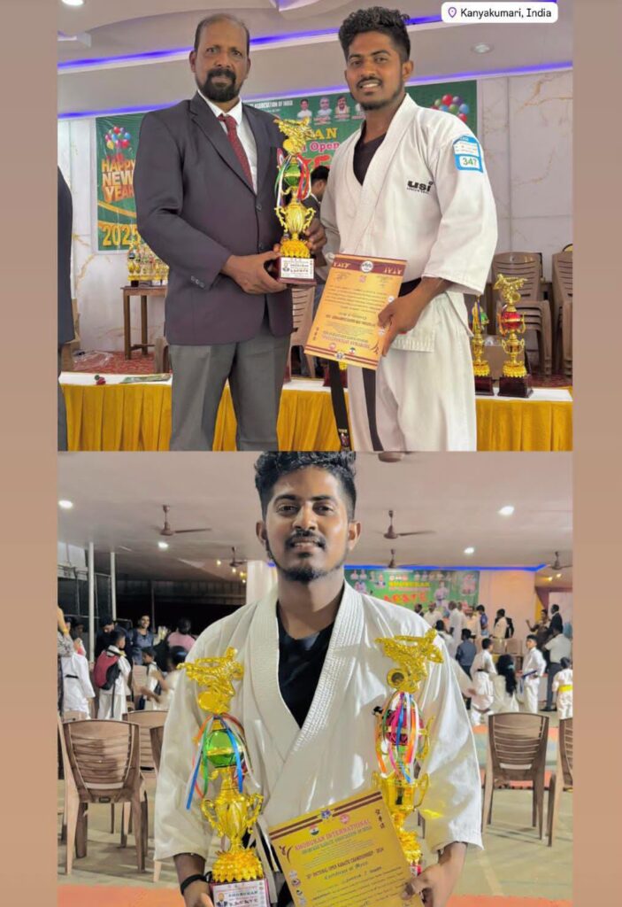 ಕನ್ಯಾಕುಮಾರಿಯಲ್ಲಿ ನಡೆದಂತ ಓಪನ್ ನ್ಯಾಷನಲ್ ಲೆವೆಲ್ ಕರಾಟೆ ನ ಫೈಟ್ ವಿಭಾಗದಲ್ಲಿ ಕಾರ್ಕಳದ ಸುಶಾಂತ್ ಶೆಟ್ಟಿ ಒಂದು ಬಂಗಾರದ ಪದಕ ಹಾಗೂ ಒಂದು ಬೆಳ್ಳಿ ಪದಕ ಗೆದ್ದಿದ್ದಾರೆ.