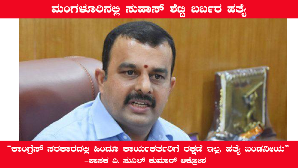 HomeBlog“ಕಾಂಗ್ರೆಸ್ ಸರಕಾರದಲ್ಲಿ ಹಿಂದೂ ಕಾರ್ಯಕರ್ತರಿಗೆ ರಕ್ಷಣೆ ಇಲ್ಲ, ಹತ್ಯೆ ಖಂಡನೀಯ”-ಶಾಸಕ ವಿ. ಸುನಿಲ್ ಕುಮಾರ್ ಆಕ್ರೋಶ