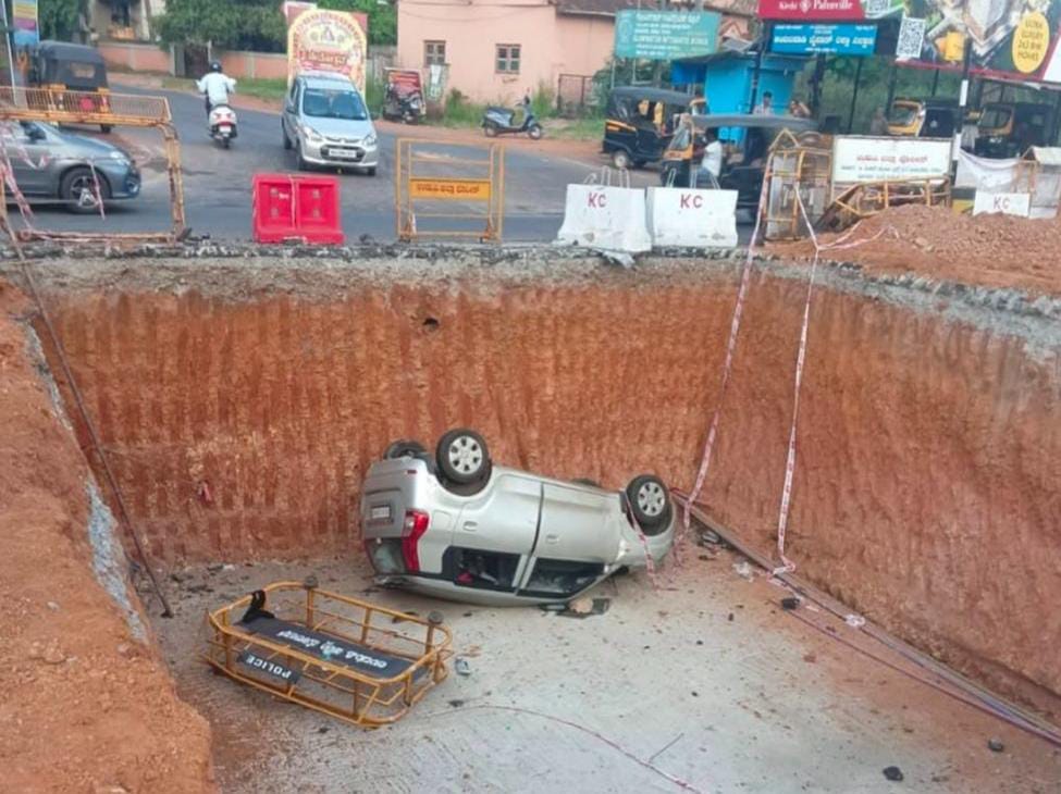 ರಾಷ್ಟ್ರೀಯ ಹೆದ್ದಾರಿ 66ರ ಅಂಬಲಪಾಡಿ ಜಂಕ್ಷನ್ ನಲ್ಲಿ ಮೇಲ್ಸೇತುವೆಯ ಪಿಲ್ಲರ್ ನಿರ್ಮಿಸಲು ಬೃಹತ್ ಹೊಂಡ ತೆಗೆಯಲಾಗಿದ್ದು ಕೇರಳ ನೋಂದಣಿ ಸಂಖ್ಯೆ ಹೊಂದಿರುವ ಐದು ಪ್ರಯಾಣಿಕರಿದ್ದ ಕಾರೊಂದು ಕೊಲ್ಲೂರಿಗೆ ಪ್ರಯಾಣಿಸುತ್ತಿದ್ದ ವೇಳೆ ಚಾಲಕನ ನಿಯಂತ್ರಣ ತಪ್ಪಿ ಹೊಂಡಕ್ಕೆ ಮಗುಚಿ ಬಿದ್ದಿದೆ. ಅದೃಷ್ಟವಶಾತ್ ಕಾರಿನಲ್ಲಿದ್ದ ಪ್ರಯಾಣಿಕರು ಸಣ್ಣಪುಟ್ಟ ಗಾಯಗಳೊಂದಿಗೆ ಜೀವಪಾಯದಿಂದ ಪಾರಾಗಿದ್ದಾರೆ.