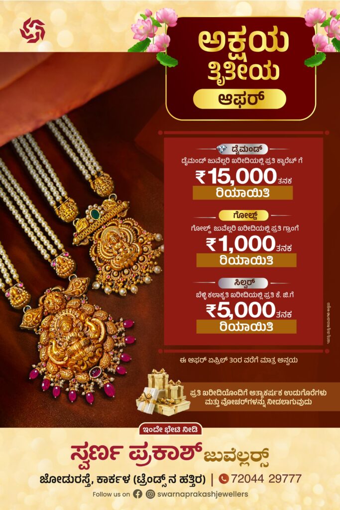 ಕಾರ್ಕಳ: ಅಕ್ಷಯ ತೃತೀಯದ ಪ್ರಯುಕ್ತ ಸ್ವರ್ಣ ಪ್ರಕಾಶ್ ಜುವೆಲ್ಲರ್ಸ್ ನಲ್ಲಿ ವಿಶೇಷ ರಿಯಾಯಿತಿ