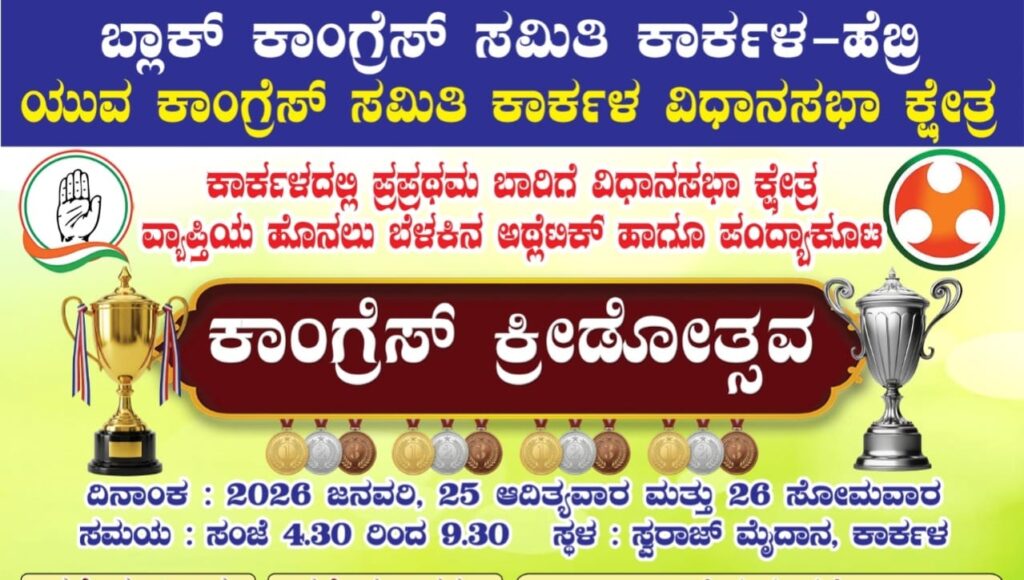 ಬ್ಲಾಕ್ ಕಾಂಗ್ರೇಸ್ ಸಮಿತಿ ಕಾರ್ಕಳ – ಹೆಬ್ರಿ ಹಾಗೂ ಯುವ ಕಾಂಗ್ರೆಸ್ ಸಮಿತಿಯ ವತಿಯಿಂದ ಕಾರ್ಕಳ ಸ್ವರಾಜ್ ಮೈದಾನದಲ್ಲಿ ಕಾರ್ಕಳ ವಿಧಾನ ಸಭಾ ವ್ಯಾಪ್ತಿಯ ಅಥ್ಲೆಟಿಕ್ಸ್ ಹಾಗೂ ಕ್ರೀಡಾಕೂಟವನ್ನು ಉಡುಪಿ ಜಿಲ್ಲಾ ಉಸ್ತುವಾರಿ‌ ಸಚಿವೆ ಲಕ್ಷ್ಮಿ ಹೆಬ್ಬಾಳ್ಕರ್ ಉದ್ಘಾಟಿಸಿದರು.