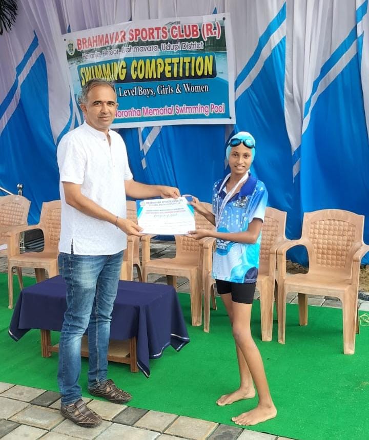 ಕಾರ್ಕಳ : ಬ್ರಹ್ಮಾವರ ಸ್ಪೋರ್ಟ್ಸ್ ಕ್ಲಬ್ ಅವರು ಆಯೋಜಿಸಿದ್ದ ಜಿಲ್ಲಾ ಮಟ್ಟದ ಈಜು ಸ್ಪರ್ದೆಯಲ್ಲಿ ಕಾರ್ಕಳ ಭುವನೇಂದ್ರ ರೆಸಿಡೆನ್ಸಿಯಲ್ ಶಾಲೆಯ 5 ನೇ ತರಗತಿಯ ವಿದ್ಯಾರ್ಥಿನಿ ಸಾನ್ವಿಕ ಟಿ. ಆರ್ 50 ಮೀ. ಬ್ಯಾಕ್ ಸ್ಟ್ರೋಕ್ ನಲ್ಲಿ ಚಿನ್ನದ ಪದಕ, 50 ಮೀ.ಫ್ರೀಸ್ಟೈಲ್‌ನಲ್ಲಿ ಚಿನ್ನದ ಪದಕ ತಮ್ಮದಾಗಿಸಿಕೊಂಡಿದ್ದಾರೆ. ಇವರು ಕಾರ್ಕಳದ ರಘು ಟಿ.ಎನ್ ಸುಮಾ ಎ.ಎಸ್ ಅವರ ಪುತ್ರಿ