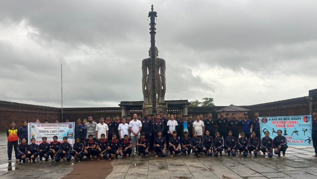 ಕಾರ್ಕಳ: ಅಂತರಾಷ್ಟ್ರೀಯ ಯೋಗ ದಿನಾಚರಣೆಯ ಅಂಗವಾಗಿ ಕಾರ್ಕಳದ ಶ್ರೀ ಭುವನೇಂದ್ರ ಕಾಲೇಜು ತನ್ನ ಎನ್.ಸಿ.ಸಿ.ಯೂನಿಟ್ ನ ಭೂದಳ, ನೌಕಾದಳವು ಉಡುಪಿಯ ಎಲ್.ಸಿ.ಸಿ.6 ನೇವಲ್ ಹಾಗೂ ಮಾಹೆ, ಮಣಿಪಾಲ ಅಲ್ಲದೆ ಕಾರ್ಕಳದ ಪುರಾತತ್ವ ಇಲಾಖೆಯ ಸಹಯೋಗದಲ್ಲಿ ಕಾರ್ಕಳದ ಬಾಹುಬಲಿ ಪ್ರವಚನ ಮಂದಿರ ಹಾಗೂ ಗೊಮ್ಮಟೇಶ್ವರ ಬೆಟ್ಟದಲ್ಲಿ ಯೋಗ ಕಾರ್ಯಕ್ರಮವನ್ನು ಹಮ್ಮಿಕೊಂಡಿತು.