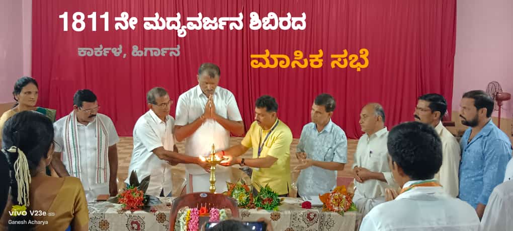 ಕಾರ್ಕಳ ತಾಲೂಕಿನ 1811ನೇ ಮದ್ಯ ವರ್ಜನ ಶಿಬಿರದ ಪಾನಮುಕ್ತ ನವಜೀವನ ಸದಸ್ಯರ ಮಾಸಿಕ ಸಭೆ ಹಿರ್ಗಾನ ಶ್ರೀ ಅಧಿಶಕ್ತಿ ಮಹಾಲಕ್ಷ್ಮಿ ದೇವಸ್ಥಾನದ ಸಭಾಂಗಣದಲ್ಲಿ ಸಮಿತಿಯ ಗೌರವಾಧ್ಯಕ್ಷರಾದ ಅಶೋಕ್ ನಾಯಕ್ ರವರ ಅಧ್ಯಕ್ಷತೆಯಲ್ಲಿ ನಡೆಯಿತು.