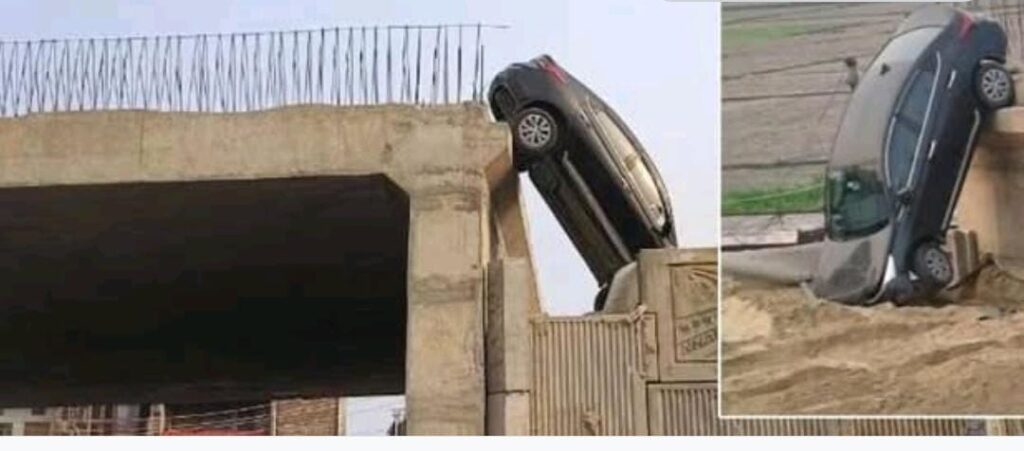 ಗೂಗಲ್ ಮ್ಯಾಪ್ ತೋರಿಸಿದ ದಾರಿಯಲ್ಲಿ ಸಾಗಿ ನಿರ್ಮಾಣ ಹಂತದ ಫ್ಲೈ ಓವರ್ ನಲ್ಲಿ ತಲೆ ಕೆಳಗಾಗಿ ಸಿಲುಕಿಕೊಂಡ ಕಾರು: ಅದೃಷ್ಟವಶಾತ್ ಪಾರಾದ ಪ್ರಯಾಣಿಕರು