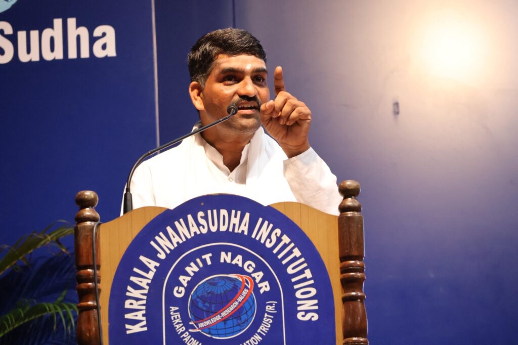 ಕಾರ್ಕಳ ಜ್ಞಾನಸುಧಾ ಶಿಕ್ಷಣ ಸಂಸ್ಥೆಯ ಆವರಣದಲ್ಲಿ ಶ್ರೀ ಮಹಾಗಣಪತಿ ದೇವಸ್ಥಾನ ಹಾಗೂ ಅಜೆಕಾರ್ ಪದ್ಮಗೋಪಾಲ್ ಎಜ್ಯುಕೇಶನ್ ಟ್ರಸ್ಟಿನ ಸಹಯೋಗದಲ್ಲಿ ನಡೆಯುತ್ತಿರುವಮೌಲ್ಯಸುಧಾ ಮಾಲಿಕೆ-40ರಲ್ಲಿ “ಸಕಾರಾತ್ಮಕ ಆಲೋಚನೆ ಸಾಧನೆಗೆ ಪ್ರೇರಣೆ” ಎಂಬ ವಿಷಯದ ಕುರಿತು ವಿಶೇಷ ಉಪನ್ಯಾಸದಲ್ಲಿ ಮಾತನಾಡಿದರು.