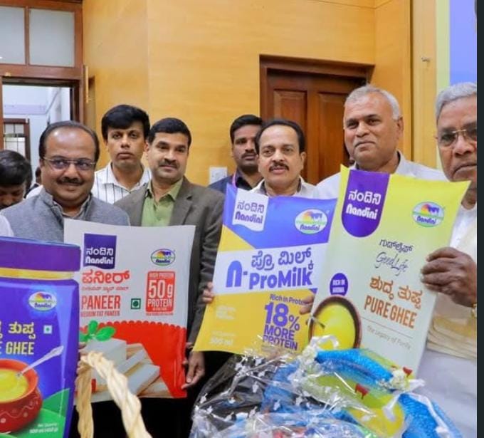 ಬೆಂಗಳೂರು: ಮುಖ್ಯಮಂತ್ರಿ ಸಿದ್ದರಾಮಯ್ಯ ಅವರು ಶುಕ್ರವಾರ ವಿಧಾನಸೌಧದಲ್ಲಿ ನಂದಿನಿ ವತಿಯಿಂದ ಗುಡ್‌ಲೈಫ್‌ ಹೈ ಅರೋಮಾ ತುಪ್ಪ, ಮೀಡಿಯಂ ಫ್ಯಾಟ್‌ ಪನೀರ್‌, ಹೆಚ್ಚು ಪ್ರೊಟೀನ್‌ ಹೊಂದಿರುವ ಎನ್‌-ಪ್ರೊಮಿಲ್ಕ್‌ ಹಾಲು, ಪ್ರೊಬಯೋಟಿಕ್‌ ಮೊಸರು, ಮಾವು ಮತ್ತು ಸ್ಟ್ರಾಬೆರಿ ಲಸ್ಸಿ ಸೇರಿದಂತೆ ಹಲವು ಹೊಸ ಉತ್ಪನ್ನಗಳನ್ನು ಲೋಕಾರ್ಪಣೆ ಮಾಡಿದರು.