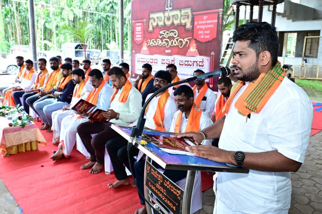 ಪಶ್ಚಿಮಘಟ್ಟದ ದಟ್ಟ ಕಾನನದ ತಪ್ಪಲಿನ ಪುಟ್ಟ ಸುಗ್ರಾಮ ನಾರಾವಿಯಲ್ಲಿ ನಡೆಯಲಿರುವ ಮಹಾ ಚಂಡಿಕಾಯಾಗ 22 ಡಿಸೆಂಬರ್ 2024 ಐತಿಹಾಸಿಕ ಧಾರ್ಮಿಕ ಕ್ಷಣಕ್ಕೆ ಭಕ್ತಿಯಕ್ಕರೆಯ ಕರೆಯೋಲೆ ನೀಡುವ ಭಕ್ತಿಯುದ್ದೇಶದ ಆಮಂತ್ರಣ ಪತ್ರಿಕೆ ಬಿಡುಗಡೆಯ ಕಾರ್ಯಕ್ರಮವು ಶ್ರೀ ಉಮಾಮಹೇಶ್ವರ ದೇವಸ್ಥಾನ ಮರೋಡಿ ಇದರ ಆಡಳಿತ ಕಾರ್ಯದರ್ಶಿ ಜಯಂತ್ ಕೋಟ್ಯಾನ್, ಖ್ಯಾತ ಉದ್ಯಮಿ ಹಿಂದೂ ಧಾರ್ಮಿಕ ಮುಖಂಡ ರವೀಂದ್ರ ಶೆಟ್ಟಿ ಬಜಗೋಳಿ ಮತ್ತು ಜನ ಸ್ನೇಹಿ ಬಡವರ ಬಂಧು ಪ್ರಖ್ಯಾತ ವೈದ್ಯರಾದ ಡಾ. ಪ್ರಸಾದ್ ಬಿ. ವಿಜಯ ಕ್ಲಿನಿಕ್ ಇವರ ಗಣ್ಯ ಉಪಸ್ಥಿತಿಯಲ್ಲಿ 13 ಅಕ್ಟೋಬರ್ 2024 ಆದಿತ್ಯವಾರ ಬೆಳಿಗ್ಗೆ 9-30ಕ್ಕೆ ಶ್ರೀ ಸೂರ್ಯನಾರಾಯಣ ದೇವಸ್ಥಾನ ವಠಾರದಲ್ಲಿ ನಡೆಯಿತು.