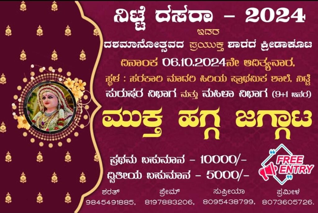 HomeBlogನಿಟ್ಟೆ :ಆ 06 ರಂದು ಶ್ರೀ ಶಾರದಾ ದೇವಿಯ ದಶಮಾನೋತ್ಸವದ ಅಂಗವಾಗಿ ಕ್ರೀಡಾಕೂಟ
