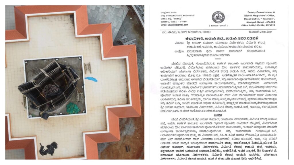 ನಿರ್ಮಿತಿ ಕೇಂದ್ರ ಯೋಜನಾ ನಿರ್ದೇಶಕರಾದ ಅರುಣ್ ಕುಮಾರ್ ಅವರು ಕಾರ್ಕಳ ತಾಲೂಕು ಎರ್ಲಪಾಡಿ ಗ್ರಾಮದ ಬೈಲೂರು ಉಮಿಕಲ್ ಬೆಟ್ಟದಲ್ಲಿ ನಿರ್ಮಿಸಿರುವ ಪರಶುರಾಮ ಥೀಂ ಪಾರ್ಕ್ ಕಾಮಗಾರಿ ಪೂರ್ಣಗೊಳಿಸದೇ, ಸಂಬಂದಪಟ್ಟ ಇಲಾಖೆಗೆ ಹಸ್ತಾಂತರ ಮಾಡದೇ ಉದ್ಘಾಟನಾ ಕಾರ್ಯಕ್ರಮವನ್ನು ಮಾಡಿರುವುದರಿಂದ, ಈ ಕಾಮಗಾರಿಯ ಗುಣಮಟ್ಟದ ಬಗ್ಗೆ ಆರೋಪಗಳಿರುವುದರಿಂದ ಮತ್ತು ಈ ವಿಚಾರದ ಬಗ್ಗೆ ಸಿ.ಒ.ಡಿ ತನಿಖೆ ಹಾಗೂ ನಾಯಮೂರ್ತಿ ಹೆಚ್ ಎನ್ ನಾಗಮೋಹನ್ ದಾಸ್ ವಿಚಾರಣಾ ಆಯೋಗದಲ್ಲಿ ತನಿಖಾ ಹಂತದಲ್ಲಿ ಇದ್ದು ಸದ್ರಿ ತನಿಖೆಗೆ ಅಡಚಣೆ ಆಗುವ ಸಾಧ್ಯತೆ ಇರುವುದರಿಂದ ಸಾರ್ವಜನಿಕ ಮತ್ತು ಆಡಳಿತಾತ್ಮಕ ಹಿತದೃಷ್ಟಿಯಿಂದ ನಿರ್ಮಿತಿ ಕೇಂದ್ರದ ಯೋಜನಾ ನಿರ್ದೇಶಕರಾದ ಅರುಣ್ ಕುಮಾರ್ ಇವರನ್ನು ಅಮಾನತಿನಲ್ಲಿಟ್ಟು ಆದೇಶಿಸಿದೆ.