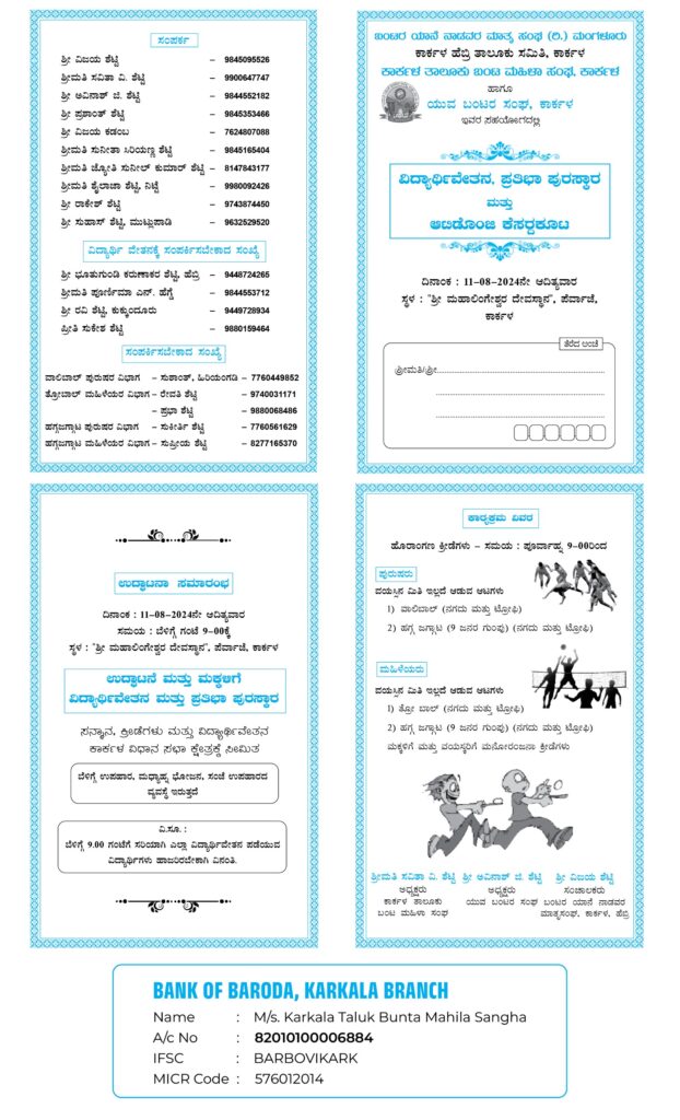 ಬಂಟರ ಯಾನೆ ನಾಡವರ ಮಾತೃ ಸಂಘ (ರಿ.) ಮಂಗಳೂರು ಕಾರ್ಕಳ ಹೆಬ್ರಿ ತಾಲೂಕು ಸಮಿತಿ ಕಾರ್ಕಳ, ಕಾರ್ಕಳ ತಾಲೂಕು ಬಂಟ ಮಹಿಳಾ ಸಂಘ ಕಾರ್ಕಳ, ಯುವ ಬಂಟರ ಸಂಘ ಕಾರ್ಕಳ