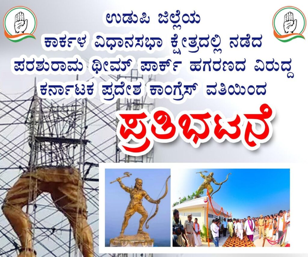 ಕರ್ನಾಟಕ ಪ್ರದೇಶ ಕಾಂಗ್ರೆಸ್ ಸಮಿತಿ ವತಿಯಿಂದ ಕಾರ್ಕಳ ಬೈಲೂರು ಎರ್ಲಪಾಡಿ ಉಮ್ಮಿಕಲ್ ಬೆಟ್ಟದ ಮೇಲೆ ನಿರ್ಮಾಣಗೊಂಡಿರುವ ಪರಶುರಾಮ ಥೀಮ್ ಪಾರ್ಕ್ ಹಾಗೂ ಕಂಚಿನ ಪ್ರತಿಮೆಯ ಹಗರಣದ ವಿರುದ್ದ ಜುಲೈ 23 ರಂದು ಬೆಂಗಳೂರಿನ ಪ್ರೀಡಂ ಪಾರ್ಕ್ ಬಳಿ ಇರುವ ಮಹಾತ್ಮಾ ಗಾಂಧಿ ಪ್ರತಿಮೆಯ ಮುಂಭಾಗದಲ್ಲಿ ಬೃಹತ್ ಪ್ರತಿಭಟನೆಯನ್ನು ಹಮ್ಮಿಕೊಳ್ಳಲಾಗಿದೆ.