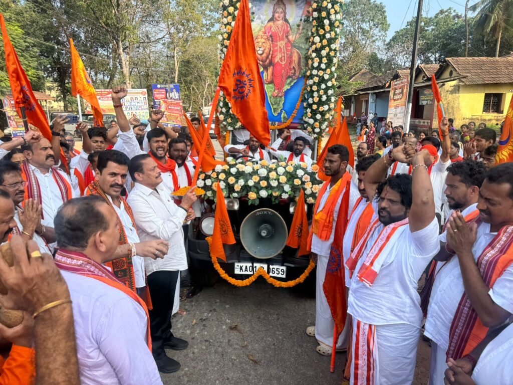 ಬೈಲೂರು ಹಿಂದೂ ಸಂಗಮ ಅಭೂತಪೂರ್ವ ಕಾರ್ಯಕ್ರಮದಲ್ಲಿ ಹಿರಿಯರು ಮಾರ್ಗದರ್ಶಕರು ಆದ ವೆಂಕಪ್ಪ ಹೆಗ್ಡೆ ಗೋವಿಂದೂರು ,ಮಹೇಶ್ ಶೆಟ್ಟಿ ತೆಳ್ಳಾರು ಹಿಂದು ಮುಖಂಡರು ಉದ್ಯಮಿಗಳು ಮುಂಬೈ, ಸಂತೋಷ ವಾಗ್ಲೆ ಉದ್ಯಮಿ ಗಳು ಉಡುಪಿ, ಸುಭಾಷ್ ಹೆಗ್ಡೆ ಪುಣೆ,.ಸುಧೀರ್ ಹೆಗ್ಡೆ ಬೈಲೂರ್, ವಿಕ್ರಂ ಹೆಗ್ಡೆ ಕಣಜಾರ್,ಚಂದನ್ ಹೆಗ್ಡೆ ಕಣಜಾರ್, ರಾಷ್ಟ್ರೀಯ ಸ್ವಯಂಸೇವಕ ಸಂಘದ ಪ್ರಮುಖರಾದ ಗೋಪಿನಾಥ್ ಪಳ್ಳಿ, ಮಂಜುನಾಥ್ ಭಟ್, ಪ್ರಶಾಂತ್ ಶೆಟ್ಟಿ ಅಂಜಾರ್ ಪ್ರಶಾಂತ್ ಶೆಟ್ಟಿ, ಬೈಲೂರು ಗುತ್ತು ಮನೆ, ಉದಯ ಹೆಗ್ಡೆ ಗೋವಿಂದೂರು, ಸುಮಿತ್ ಶೆಟ್ಟಿ ಕೌಡೂರು,ನೀರೆ ರವೀಂದ್ರ ನಾಯಕ್,ಸದಾನಂದ ಸಾಲಿಯಾನ್ ವಕೀಲರು, ಆನಂದ್ ಪೂಜಾರಿ ಮಾಸ್ಟರ್ ಬೈಲೂರ್,ರಮೇಶ್ ಕಿಣಿ, ಸಚ್ಚಿದಾನಂದ ಪ್ರಭು ಗ್ರಾಮ ಪಂಚಾಯತ್ ಅಧ್ಯಕ್ಷರು ನೀರೆ, ಬೈಲೂರು ಗ್ರಾಮ ಪಂಚಾಯತ್ ಅಧ್ಯಕ್ಷರು, ಸುನಿಲ್ ಹೆಗ್ಡೆ ಗ್ರಾಮ ಪಂಚಾಯತ್ ಅಧ್ಯಕ್ಷರು ಗೋವಿಂದೂರು ಪ್ರಮುಖರ ಉಪಸ್ಥಿತಿಯಲ್ಲಿ ಬೈಲೂರಿನ ಹಿಂದೂ ಸಂಗಮದ ಶೋಭಾ ಯಾತ್ರೆಗೆ ಚಾಲನೆ ನೀಡಲಾಯಿತು.