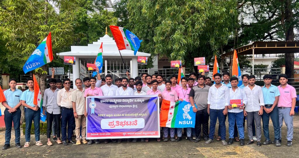 ಭಾರತ ರಾಷ್ಟ್ರೀಯ ವಿದ್ಯಾರ್ಥಿ ಒಕ್ಕೂಟ (NSUI) ಪುತ್ತೂರು ವತಿಯಿಂದ ನೀಟ್ ಪರೀಕ್ಷೆಯಲ್ಲಿನ ಅಕ್ರಮ ಖಂಡಿಸಿ & ಮರುಪರೀಕ್ಷೆಗೆ ಆಗ್ರಹಿಸಿ ಪ್ರತಿಭಟನೆ