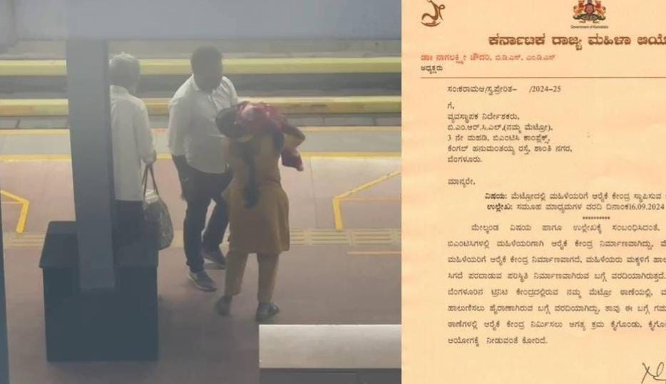 ಮಗುವಿಗೆ ಹಾಲುಣಿಸಲು ನಮ್ಮ ಮೆಟ್ರೋ ನಿಲ್ದಾಣದಲ್ಲಿ ಆರೈಕೆ ಕೇಂದ್ರ ಸ್ಥಾಪಿಸುವಂತೆ BMRCLಗೆ ಮನವಿ ಪತ್ರ ಸಲ್ಲಿಕೆ