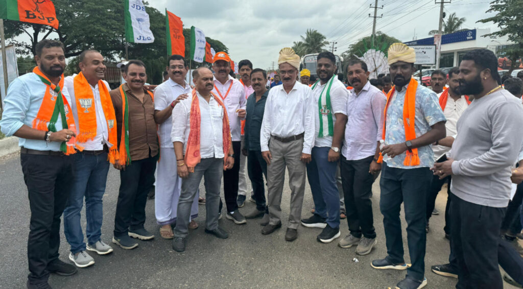 ರಾಜ್ಯ ಸರ್ಕಾರದ ಮೂಢ ಹಗರಣಕ್ಕೆ ಸಂಬಂಧಿಸಿದಂತೆ ಸಿಎಂ ರಾಜೀನಾಮೆ ಆಗ್ರಹಿಸಿ ಬಿಜೆಪಿ ಜೆಡಿಎಸ್ ನಾಯಕರ ಮೈಸೂರು ಚಲೋ ಪಾದಯಾತ್ರೆ,ಬೆಂಗಳೂರಿನಲ್ಲಿ ಆರಂಭಗೊಂಡು ಇಂದು ಐದನೇ ದಿನಕ್ಕೆ ಕಾಲಿಟ್ಟಿದೆ,ಇಂದು ಮಂಡ್ಯ ಭಾಗದಲ್ಲಿ ಪಾದಯಾತ್ರೆ ನಡೆಯುತ್ತಿದ್ದು ಕಾರ್ಕಳ ಶಾಸಕ ವಿ,ಸುನಿಲ್ ಕುಮಾರ್ ರವರ ಜೊತೆಯಾಗಿ ಕಾರ್ಕಳದ ಬಿಜೆಪಿ ಕಾರ್ಯಕರ್ತರು ‘ಮೈಸೂರು ಚಲೋ’ ಪಾದಯಾತ್ರೆಯಲ್ಲಿ ಪಾಲ್ಗೊಂಡರು