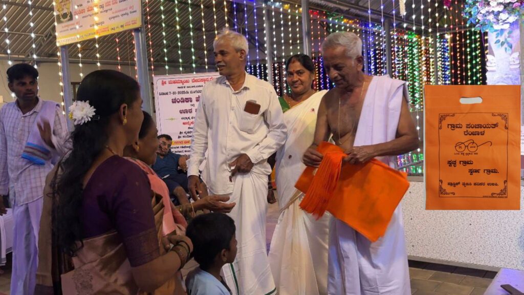 ರೆಂಜಾಳ ಗ್ರಾಮ ಪಂಚಾಯತ್ ಅಧ್ಯಕ್ಷ ರಮೇಶ್ ವಿ ಶೆಟ್ಟಿ,ಉಪಾಧ್ಯಕ್ಷೆ ಪುಷ್ಪ ಗೌಡ,ಪಿಡಿಒ ಪದ್ಮಕುಮಾರಿ,ಸದಸ್ಯರಾದ ವೃಷಭರಾಜ್ ಜೈನ್,ರಮೇಶ್ ಶೆಟ್ಟಿ ಮಂಜೊಟ್ಟು,ದೀಪಿಕಾ ಶೆಟ್ಟಿ,ಆಶಾ,ಸುನಂದಾ ಹಾಗೂ ಪಂಚಾಯತ್ ಸಿಬ್ಬಂದಿಗಳಾದ ನಳಿನಿ,ಶೋಭಾ,ಸುಪ್ರಿಯಾ,ಅಶ್ವಿನಿ,ಲಲಿತಾ,ಪ್ರಮತ್,ನವೀನ್,ನಾಗೇಶ್,ಹಾಗೂ ಸಂಸ್ಕೃತಿ ಸಿಂಚನ ಸಂಚಾಲಕರಾದ ರಾಜೇಶ್ ರೆಂಜಾಳ ,ಖ್ಯಾತ ವಾಗ್ಮಿ ಮುನಿರಾಜ್ ರೆಂಜಾಳ,ಶಶಿಕಾಂತ್ ರೆಂಜಾಳ,ಸುಜೇಶ್ ಜೈನ್,ಉಮೇಶ್ ಶೆಟ್ಟಿ ಮುಂತಾದವರ ಸಹಕಾರದಲ್ಲಿ ಬಟ್ಟೆ ಕೈ ಚೀಲವನ್ನು ಗ್ರಾಮಸ್ಥರಿಗೆ ವಿತರಿಸಿದರು.