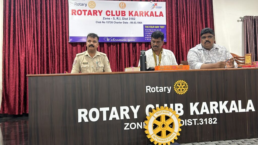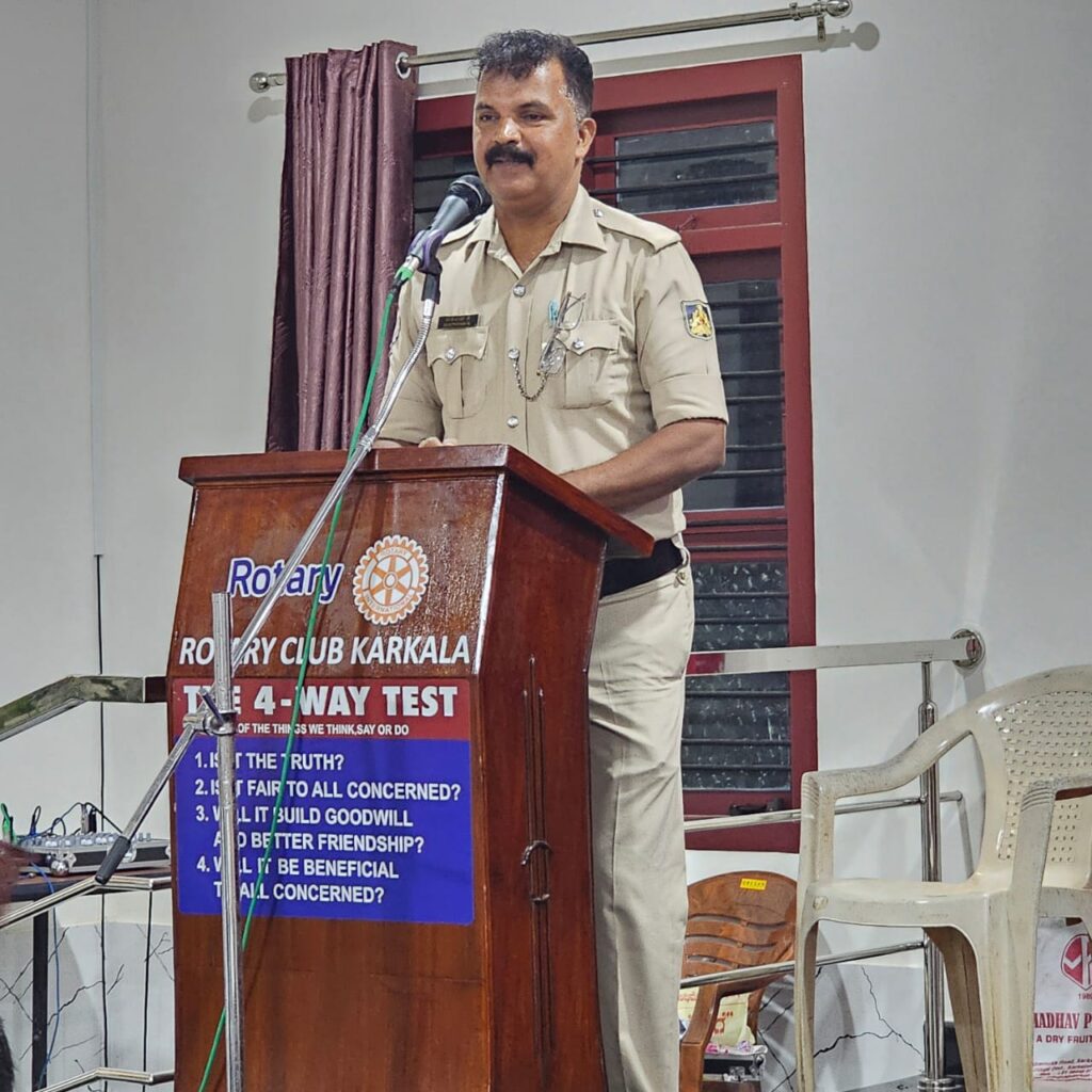ಮುಖ್ಯ ಅತಿಥಿಯಾಗಿ ಹೆಚ್ಚುವರಿ ಪೊಲೀಸ್ ಅದೀಕ್ಷಕರ ಕಚೇರಿ ಉಡುಪಿ ಇಲ್ಲಿಯ ಹೆಡ್ ಕಾನ್ಸ್ಟೇಬಲ್ ಸಂತೋಷ್ ಕಾರ್ಕಳ ರವರು ಪೋಲೀಸ್ ಇಲಾಖೆಯಿಂದ ಹಿರಿಯ ನಾಗರಿಕರಿಗೆ ಹಾಗೂ ಇತರರಿಗೆ ಸಿಗುವ ವಿವಿಧ ಸೇವೆಗಳು, ಸೌಲಭ್ಯಗಳು ಮತ್ತು ಸೈಬರ್ ವಂಚನೆ ಬಗ್ಗೆ ವಿವರವಾದ ಉಪಯುಕ್ತ ಮಾಹಿತಿ ನೀಡಿ ಜಾಗೃತಿ ಮೂಡಿಸಿ ಹಿರಿಯ ನಾಗರಿಕರಿಗೆ ಉಡುಪಿ ಜಿಲ್ಲಾ ಪೊಲೀಸ್ ಇಲಾಖೆ ಆಸರೆ ಆಗಿದ್ದು ಪೊಲೀಸ್ ಇಲಾಖೆಯು ಸದಾ ನಿಮ್ಮ ಸೇವೆಯಲ್ಲಿ ಲಭ್ಯವಿದೆ ಎಂದು ತಿಳಿಸಿದರು ರೋಟರಿ ಮಾಹಿತಿಯನ್ನು ವೃಂದ ಹರಿಪ್ರಕಾಶ್ ಇವರು ನೆರವೇರಿಸಿ ಕೊಟ್ಟರು. ಚೇತನಾ ಪ್ರಭುರವರು ಅತಿಥಿಗಳನ್ನು ಪರಿಚಯಿಸಿದರು . ಕಾರ್ಯದರ್ಶಿ ಗಣೇಶ್ ಸಾಲಿಯಾನ್ ವಂದಿಸಿದರು.
