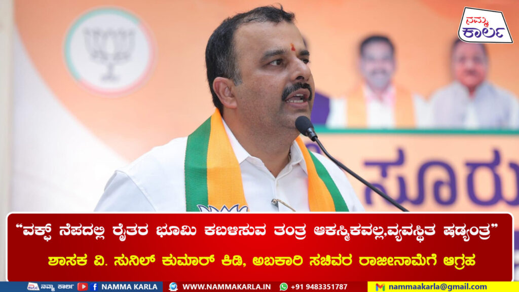 ಬೆಂಗಳೂರು : ವಕ್ಫ್ ಆಸ್ತಿ ಒತ್ತುವರಿ ನೆಪದಲ್ಲಿ ರಾಜ್ಯದ ರೈತರ ಭೂಮಿ ಕಬಳಿಸಲು ಸರ್ಕಾರ ಮುಂದಾಗಿದ್ದು ಆಕಸ್ಮಿಕವೂ ಅಲ್ಲ, ಕಣ್ತಪ್ಪಿನ ಕಾರ್ಯವೂ ಅಲ್ಲ.ಇದೊಂದು ವ್ಯವಸ್ಥಿತ ಷಡ್ಯಂತ್ರ ಎಂದು ಮಾಜಿ ಸಚಿವ ವಿ.ಸುನೀಲ್ ಕುಮಾರ್ ಆರೋಪಿಸಿದ್ದಾರೆ.