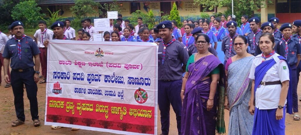ಸರಕಾರಿ ಪದವಿ ಪೂರ್ವ ಕಾಲೇಜು, ಸಾಣೂರು ಇಲ್ಲಿ ದಿನಾಂಕ 24.09.2025 ರಂದು ರೇಂಜರ್ಸ್ ಹಾಗೂ ರೋವರ್ಸ್ ಘಟಕದ ವತಿಯಿಂದ ಮಧ್ಯ ವ್ಯಸನದ ವಿರುದ್ಧ ಅರಿವು ಮೂಡಿಸಲು ಜಾಥಾ ಕಾರ್ಯಕ್ರಮ ನಡೆಯಿತು.