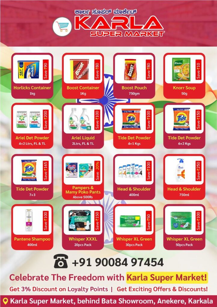 🔴 ಸ್ವಾತಂತ್ರ್ಯೋತ್ಸವದ ಸಂಭ್ರಮಾಚರಣೆಯನ್ನು “ಕಾರ್ಲ ಸೂಪರ್ ಮಾರ್ಕೆಟ್ ನೊಂದಿಗೆ ಆಚರಿಸಿ”